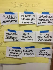 You might have read my blog post back in August, titled Divergence at Agile2015. If I wanted to structure a traditional conference, there would have been a ton more time spent planning the tracks and schedule. For this event, I wanted to focus on getting people to share ideas around the themes of Lean, Agile, Startups, and Technology. I honestly do not believe anyone could say what the most important topics could be 1-3-6 months out. Having the attendees plan out the schedule the day of the event would ensure we would have the more relevant topics.